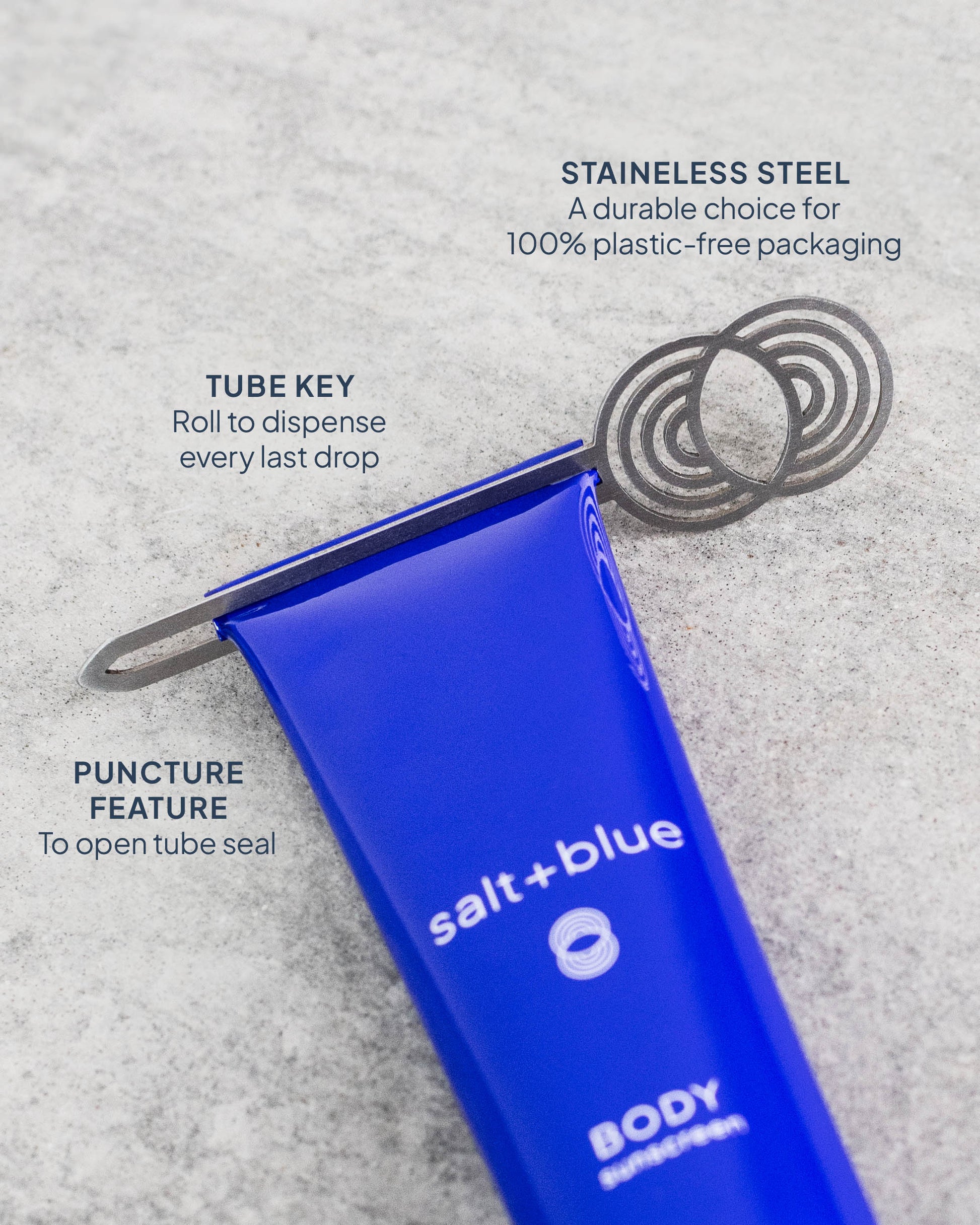 We’re confident you’ll love salt+blue Body Sunscreen—its feel, its care, and its purpose. But if it happens to not work for you, we'll happily refund your purchase with our 30-day money-back guarantee, no questions asked.This product goes beyond mere sun protection. Every salt+blue tube is intentionally crafted in sustainable packaging with mineral-based sun protection and unique botanicals, offering a non-toxic shield that cares for your skin while safeguarding the oceans that sustain life. By choosing salt+blue, you choose sun care that honors both body and planet—proof that effective protection can also be gentle, conscious, and enduring. The path to truly mindful sun care begins with a single choice. With salt+blue, you get to live in harmony with the sun while protecting your skin and sea to carry forward a commitment that’s as enduring as the tides.